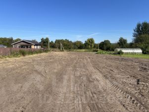 Деревня жилая, соседи живут круглый год, улица тихая спокойная, тупиковая, крайний участок на улице, рядом новые дома соседей, мимо участка нет проезда. Сам участок выровнен осенью 2024 года, тогда и были сделаны фото, готов для строительства, есть место для всех необходимых построек, частично огорожен. Рядом остановка общественного транспорта, детская площадка, небольшие озера и пруды, тихое и спокойное место для жизни.