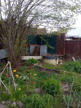На участке есть плодовые деревья, кустарники. Много цветов.