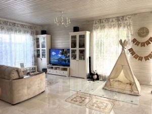 Теплый пол на всем первом этаже, Зимой очень тепло , в -30 ходим в майке! Затраты на отопление минимальные. В доме 4 спальни, 2 санузла, кухня совмещена с гостиной, площадью 65 кВ.метров. Большая уютная терраса, отапливаемый гараж на 2 автомобиля, площадью 65 кв.м. (Потолки в гараже 5.7 метров, что дает возможность надстройки еще одного этажа). Соседи все интеллигентные, приятные люди. Живут круглый год. В поселке имеется два продуктовых магазина, строительный, магазин разливного пива. Детские, тренажерные, спортивные площадки. Частный выход в красивый чистый лес, с освещенными асфальтированными дорожками. В шаговой доступности озеро, где можно летом искупаться, ловить рыбу, зимой кататься на коньках. Рядом с поселком несколько частных детских садов, 2 минуты до парка отеля Огниково, Цыпа-парка, нескольких кафе.