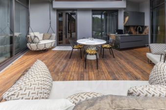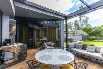 - Пристроенная веранда с раздвигающейся крышей — 35 кв. м, оборудованная как полноценная студия.