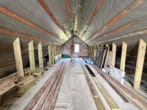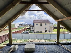 Дом построен в 2021 г. Материал стен - газоблоки и облицовочный кирпич. Общая площадь 140 кв.м, 2 этажа. Перекрытия железобетонные. Крыша выполнена из мягкой черепицы. Планировка первого этажа включает в себя кухню-гостиную с дровяным камином, спальню, гардеробную, большой совмещенный санузел с душевой кабиной, изолированную прихожую, бойлерную. Второй мансардный этаж полностью утеплен и пригоден для проживания. Однако, требует завершения отделочных работ. Предусмотрена терраса, с которой открывается приятный вид.