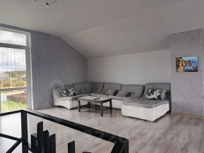 Светлая мансарда с зоной отдыха, полностью обставленная. Отсюда, как на ладони, видно всю деревню и окружающие пейзажи. Идеальное место для домашнего кинотеатра, кабинета или творческой мастерской.