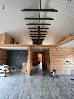 Отопление: Комбинированная система. Установлены два котла (электрический и газовый для будущего подключения) + теплые водяные полы по всему дому.
