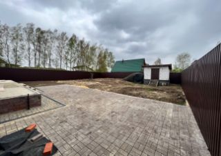 На участке — навес на 2 авто, погреб, 2 сухих подвальных помещения. Участок ровный, с дренажом, забором и откатными воротами.