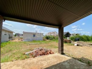 Ровный , правильной формы. На территории предусмотрена парковка для автомобиля, уложена брусчатка. Прямой выход из просторной кухни-гостиной на террасу. Сзади дома достаточно места для реализации своих идей в виде зоны отдыха, сада или огорода.