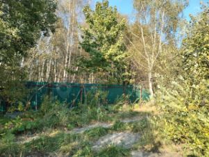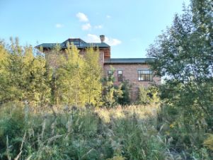 Участок обнесен забором, окружен лесом, на участке взрослые лиственные деревья, 3 объекта незавершенного строительства (дом, гараж, гостевой дом).