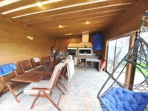 Участок благоустроен: газон, цветники, плодовые и декоративные деревья и кустарники, теплица. Для отдыха оборудована закрытая беседка с коммуникациями и зоной для барбекю.