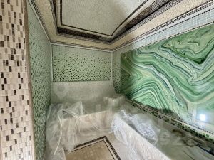 • Просторная прихожая с авторским декоративным потолком из лепнины и подсветкой.