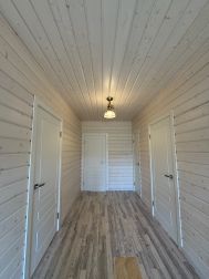 Дом выполнен по каркасной технологии, каркас из сухого строганного бруса, перекрытия между этажами выполнены двутавровыми балками с утеплением 300 мм базальтовой плитой, что гарантирует 100%-ую звукоизоляцию.