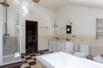 Фундамент дома ленточный с бетонными плитами перекрытия. Стены выполнены с керамических блоков качественных, долговечных с хорошей теплопроводностью. В отделке фасада использована лиственница. Кровля натуральная черепица, привезенная из Франции. Строился для себя без экономии на строительных материалах. Все системы жизнеобеспечения дома в исправном состоянии. Дом свободен.