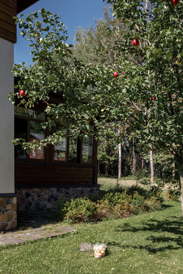 Дом 360 м2 в стиле шале и видовой участок создают органичный архитектурный ансамбль. Фасад дома оштукатурен и частично отделан лиственницей.