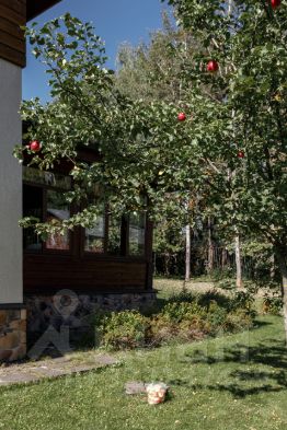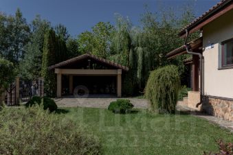 На участке выполнен дренаж, дорожки вымощены натуральным камнем, выведено освещение, подготовлена площадка под барбекю, имеется навес на две машины, деревянная хозяйственная постройка для инвентаря с жилой зоной для садовника.