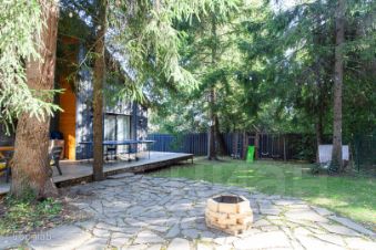 Есть несколько зон отдыха: теннисный стол, лежаки, уличный обеденный стол со стульями, уличные диван и кресла, кострище, детская игровая площадка.