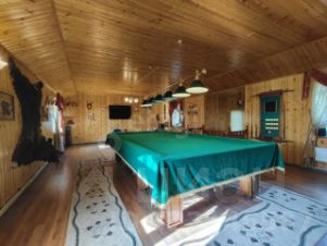 На первом этаже расположены резная кухня, санузел и уютная парилка из бессучковой лиственницы. Ушаты из сибирского кедра и финская печь Kastor создадут атмосферу настоящей русской бани. На втором этаже — бильярдная комната в охотничьем стиле и мангальная зона с печкой, где ваши вечера станут незабываемыми.