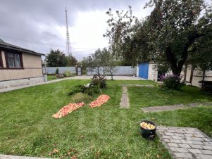 Земельный участок 17,5 соток ИЖС, ухоженный, ровный, квадратной формы, со всех сторон огорожен забором из профлиста, въезд на участок, оборудован откатными воротами и калиткой, посажены плодовые деревья, кустарники, въезд на участок, площадка перед гаражом и дорожки по участку выложены тротуарной плиткой.