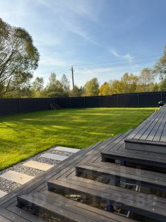 10 соток правильной формы, поднят и полностью выровнен, сделан дренаж по всему участку + дренаж по отмостке дома