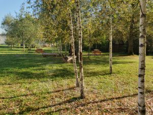 Всего на участке в 3 га пять малоэтажных домов (1-2 этажа) всегда есть место для парковки на приватной территории комплекса. Зелёные насаждения на территории комплекса, оборудованные площадки для отдыха, пикника, детская площадка. Отличное приобретение для людей с собственным авто, желающих жить за городом с минимальными трудозатратами на благоустройство.