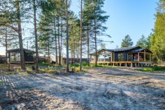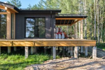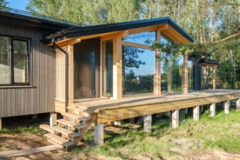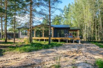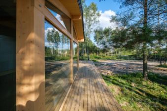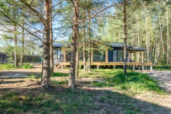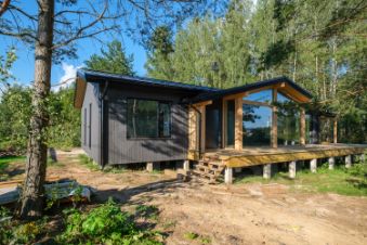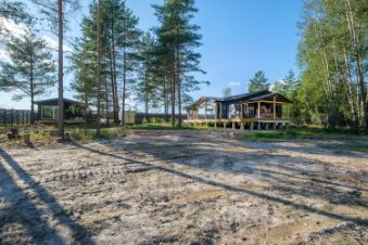 На просторном прилесном участке в живописном месте продается замечательный одноэтажный дом с панорамным остеклением.
