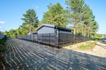 Участок: площадь: 18 соток. На участке есть Сосны, вокруг лес, по восточной стороне протекает ручей. По периметру установлен забор с двумя автоматическими откатными воротами. Также на участке построен гостевой каркасный дом 45 м². Этот дом владелец строил для нянечки.