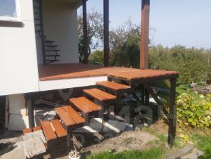 Второй этаж летний, к нему ведёт винтовая лестница с веранды дома. Пол из лиственницы, крышу осталось утеплить и можно тоже сделать жилым. Окна с двух сторон, очень просторно и красивый вид из окон. Площадь дома указана с гаражом без учёта второго этажа.