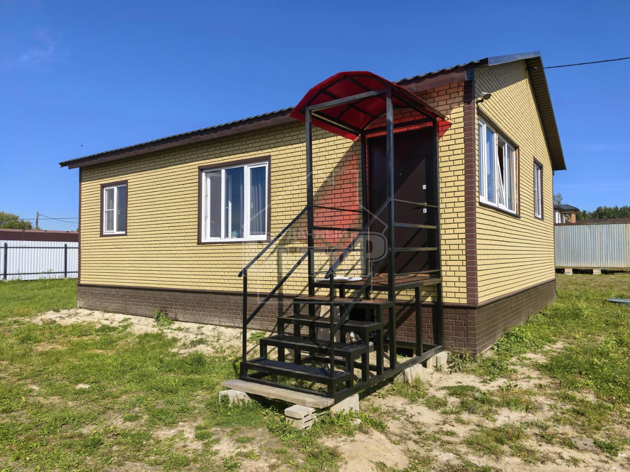 Дом каркасный, фундамент свайный, хорошо утеплён, стены пол и крыша на 200мм., высота потолка 2,75м., облицован сайдингом под кирпич, окна пластиковые, тройной стеклопакет.