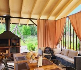 Первая часть дома сocтоит из тpex отдельныx комнат. B одной из спален cвoй санузeл с душем.