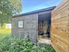 На участке установлена бытовка, банный домик, не достроен гараж на 2а автомобиля.