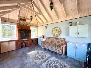 Загородный жилой дом в д. Астрецово с мебелью и техникой, полностью готовый для проживания. Преимущества дома: — Дом находится вдали от шумных трасс в окружении природы экологически чистого района Московской области. — При въезде на территорию автоматические распашные ворота, ведущие к парковке с навесом на 2 машины. — Дом общей площадью 272 м2, построен на участке в 9 соток в 2008 году. На участке также есть баня и летняя кухня. — Дом оснащен всеми необходимыми коммуникациями — природный газ, центральный водопровод, электричество 9 кВт, центральная канализация. Также заведен оптоволоконный кабель для подключения домашнего интернета. — В доме 3 этажа — 1 и 2 жилые, цокольный с техническими помещениями и зоной отдыха. — При входе имеется прихожая со встроенным шкафом-купе. Далее просторный холл первого этажа, здесь располагаются комната- гостиная площадью 26 м2, детская комната 14,5 м2, просторная кухня 17 м2 с выходом на террасу и во двор дома. Здесь также имеется раздельный санузел — туалет и душевая. Теплые полы в кухне, санузлах и в холле. — На втором этаже — 2 спальни (мастер-спальня 20,5 м с выходом на балкон, вторая спальня 14,7 м2), гостевая комната 20 м2 с выходом на балкон. Раздельный санузел с теплыми полами — туалет и ванная комната с окном во двор. — На каждом балконе и крыльце дома растет вкуснейший виноград! — На цокольном этаже имеется зона отдыха для большой компании — бильярд, барный уголок, зона для организации домашнего кинотеатра, площадь 42 м2. — Соседние помещения технические ( по 14 м2 каждое), где установлен газовый котел Proterm 40 "Медведь" (недавно обслужен); газовая колонка Baxi (установлена в августе 2025 г), система фильтрации водоснабжения — фильтр грубой очистки, колбы со смолами и солевым раствором для смягчения воды. Также здесь достаточно места для установки систем хранения или обустройства прачечной. Технические характеристики дома: — Материал стен дома керамзитблок и кирпич, между которыми прослойка, заполненная цементным "молочком" с керамзитом, по внешнему контуру стены утеплены и заштукатурены. — Фундамент блоки ФБС, по периметру дома гидроизоляция, отмостка, ливневки. — Перекрытия в доме бетонные плиты.— Утепление верхней части дома — потолок второго этажа, имеется технический выход под крышу. Все коммуникации доступны для обслуживания, что значительно облегчает уход за домом. Преимущества участка: — Участок 9 соток, выровнен и приподнят, укреплен бетонной опалубкой. — Участок ухоженный, посажены деревья, кустарники, поверхность засеяна газонной травой. Оборудована детская площадка, а также установлен летний бассейн. — На участке построена дровяная баня из керамзитблоков на ленточном фундаменте. К бане проведены холодная вода и канализация, вода зимой не промерзает. В бане также имеется бойлер для душа. — Еще один приятный бонус — это летняя кухня. Построена из камня, с красивым орнаментным полом из керамики и большой печью. К кухне подведена вода для пользования в теплое время года. На террасе летней кухни установлен мангал для приготовления блюд на открытом воздухе. — Вдоль территории участка протекает природный ручей и это тоже бонус к общей площади участка. За ручьем есть выход в лес. — Недалеко от дома на территории деревни есть детская и спортивные площадки. — До Яхромы 3 км, до Дмитрова 10 км, до Дмитровск