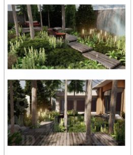 Разработан ландшафтный проект с учетом природных особенностей участка, с полным перечнем уличных осветительных приборов, предполагаемых растений, реализацией их полива и расчетами по мощению.