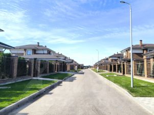 Коттедж подключен к центральным коммуникациям (магистральный газопровод, электроснабжение 15 кВт, водоснабжение, водоотведение, высокоскоростной интернет). Построен забор в едином стиле с калиткой и откатными воротами.