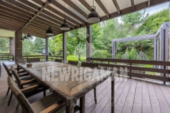 ЛОТ 80220 МТ Продажа загородного дома общей площадью 720 кв.м. Новорижское шоссе, 19 км от МКАД. Коттеджный поселок Миллениум парк. Дом построен в 2 этажа из кирпича в стиле шале. Ремонт выполнен с применением высококачественных материалов. Роскошный интерьер исполнен в светлых тонах, дополнен стильной мебелью и изысканными предметами декора. Имеется отдельный вход в блок для персонала. Функциональная кухня укомплектована встроенной современной техникой. Гостиная с дровяным камином. Через гостиную предусмотрен выход на летнюю террасу. На участке 25 соток с красивым ландшафтным дизайном есть живописный каскадный ручей, гриль комплекс барбекю, детская площадка и собственная скважина. Отдельно построен гараж на 2 м/м с подзарядкой для электромобилей.