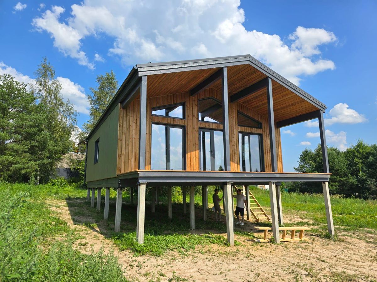 Дом просторный и светлый, зимняя технология, утепление - мин. вата 200 мм, высота потолка - от 2,7 м у стен до 4,3 м в коньке, общая площадь - 92 кв.м. Имеет 2 просторные комнаты, кухню-гостиную с панорамным остеклением и большой сан-узел. Построен строительной компанией с соблюдением технологии после проведения инженерно-геологических изысканий и топографической съёмки.