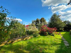 Дом практически утопает в зелени ухоженного сада с пышными гортензиями и сортовыми плодовыми деревьями.
