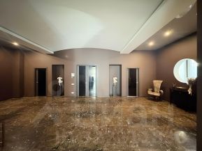 1 этаж: большая прихожая со встроенной зоной хранения. Просторный холл. Гостей с/у, комната сезонного хранения вещей, кабинет с высокими (более 5м) потолками, комната свободного назначения (с прокладкой аудиокабелей, предподготовка для домашнего кинотеатра). Большая зона со вторым светом, объединяющая каминную, столовую и кухонные площади, а также зону отдыха, с выходами на террасы. Рядом с кухней отдельное помещение - зона хранения. Светлая SPA-зона с бассейном, оборудованным противотоком, сауной, постирочной и отдельным c/у.
