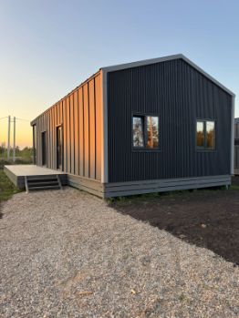 Фасад и кровля отделаны кликФальцем и реечным бруском.