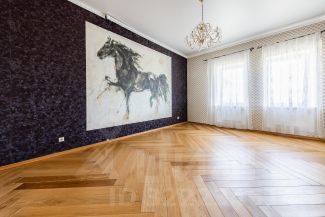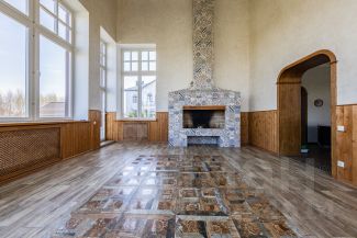 Высота потолков - 3.30 метра, в каминном зале - 7 метров, панорамные окна.