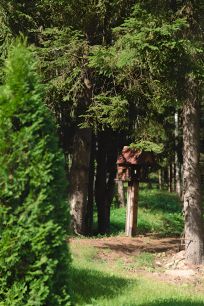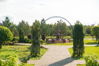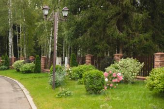 Поселок расположен в глубине векового леса, а территория украшена невероятно красивыми ландшафтными группами.