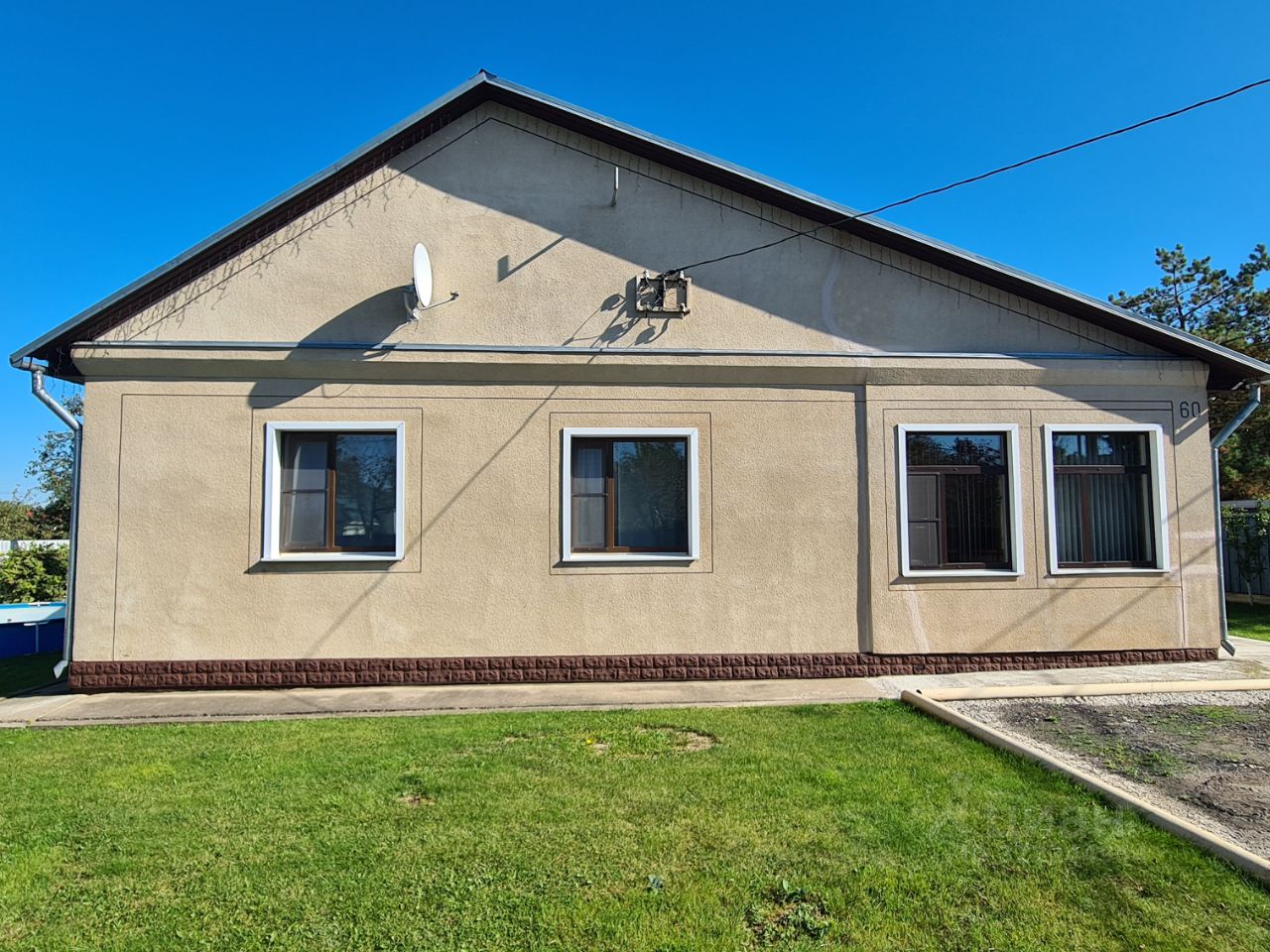 В доме 3 спальни - 20/12/12м², гостиная - 21м², кухня - 10м², большой холл, раздельный санузел. В малых спальнях и на кухне установлены кондиционеры.