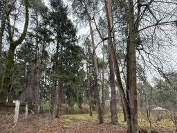 Высокий кирпичный забор со стороны дороги. Асфальт до участка.