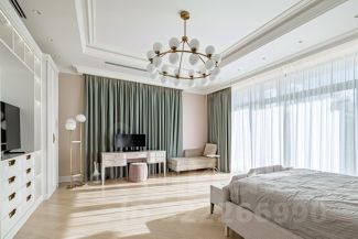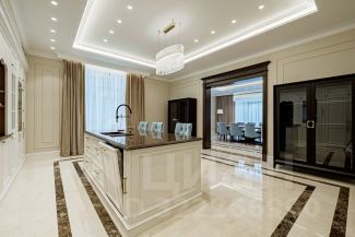 Интерьер выполнен в современном классическом стиле, в мягких постельных тонах, панорамные окна пропускают много света, делая пространство визуально шире. Со вкусом подобрана мебель и аксессуары, передовые световые решения. Гостиную украшает двухсторонний дровяной камин. Зона СПА с бассейном, джакузи, сауной и хамамом скрасят будни владельцев. Винный погреб заслуживает особого внимания.