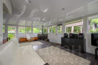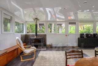 Деревянный дом на ленточном фундаменте. Гостиная, созданная чуть позже на базе веранды, установлена на сваи — блочные столбы. Дом утеплен и обшит сайдингом: в любое время года комфортные условия для пребывания.