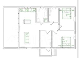Площадь дома составляет 94,5 квадратных метра, и в нем продумана каждая деталь для комфорта. В нем две светлые и уютные спальни. Просторная кухня-гостиная с панорамными окнами наполнена светом и воздухом. По всему дому сделаны теплые полы, которые обеспечат тепло зимой и приятную прохладу летом. Установлена современная сантехника, есть ванная комната и отдельная бойлерная. Высокие потолки создают ощущение простора.