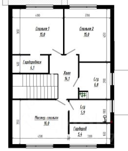 Второй этаж: 3 комнаты: мастер-спальня с гардеробом и ванной, детская с гардеробной, спальня и с/у.