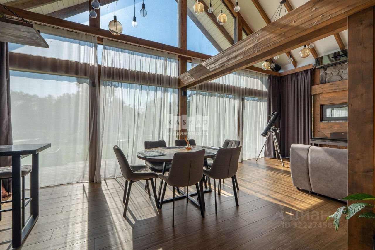 Сердцем дома является просторная гостиная с каминном, со вторым светом и панорамным остеклением, открывающим захватывающий вид на озеро. Продолжением гостиной служит летняя терраса, это идеальное место для отдыха на свежем воздухе и проведения времени с семьей и друзьями.