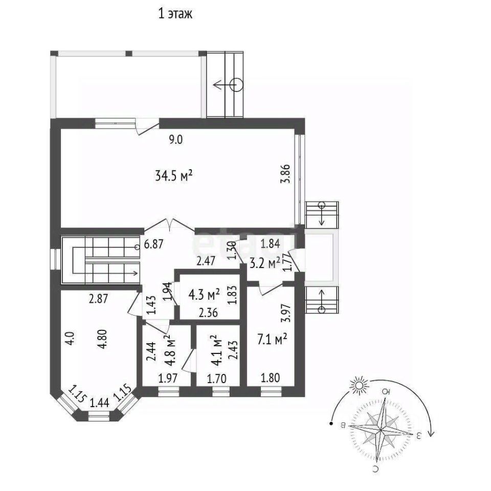 Дом выполнен с панорамным остеклением на первом этаже и отличается продуманной планировкой: на первом уровне расположены гостиная, санузел, спальня или кабинет, котельная, постирочная и сауна. Второй этаж занимает просторная мастер-спальня с гардеробной и собственной ванной, а также три дополнительные спальни и второй санузел.Качественный дизайнерский ремонт, установлена встроенная техника и мебель, что позволяет заехать сразу после покупки. С гостиной есть выход на большую террасу. Ключевые инженерные решения включают систему теплых полов, кондиционирование, магистральный газ, центральное водоснабжение с системой очистки и дополнительным колодцем для полива, центральную канализацию и электрическую мощность 12,5 кВт.