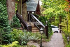 На участке выполнен многоконтурный дренаж и ландшафтный дизайн, прогулочные дорожки вымощены из натурального камня. Высажены взрослые лесные и декоративные деревья и кустарники. Установлена система полива. Детский городок. Смонтировано освещение с автоматическим включением по датчику освещенности. На доме установлена новогодняя иллюминация.