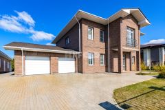 Первый этаж: холл, кухня-столовая-гостиная, 2 спальни, кладовка, санузел, летняя застекленная терраса, гараж для 2-х автомобилей с мастерской, открытая терраса и патио, где можно поставить шезлонги.