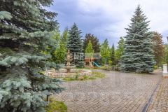 На участке: открытый теннисный корт, фонтан, пруд, зона барбекю.