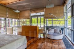 2 этаж: хозяйский блок: спальня с панорамным остеклением и выходом на террасу, 2 гардеробные, 2 с/у;