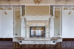 1 этаж 481 м2: главный вход в дом, гардеробные комнаты, первая двухсветная гостиная с камином, библиотека, кабинет, двухсветная кухня столовая с выходом на открытую террасу, вторая двухсветная гостиная с камином и балконом, мангальная с выходом на веранду, с/у, лифт;